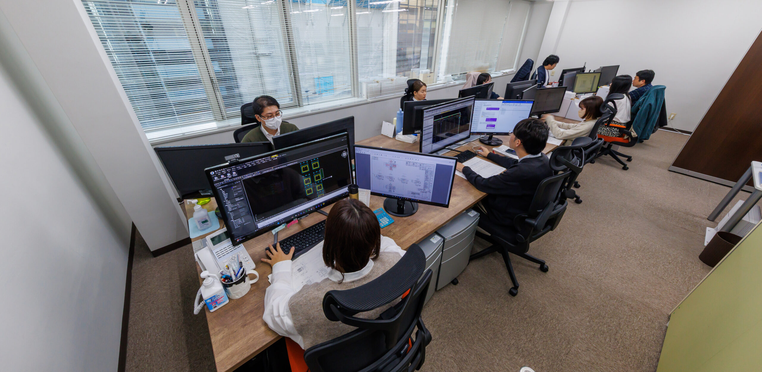 キーライフの一番の強みは、プレキャストコンクリートの設計に特化したエンジニア集団であることです。組織の規模も業界トップクラスを誇っており、常にいくつものプロジェクト案件が動いている状況。ベテランが若手を育てる環境も整っており、一人ひとりが経験値を高めながら“より難易度が高い設計”に挑み続けています。
